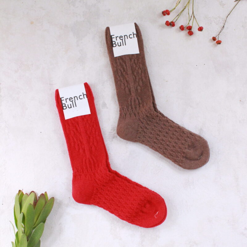 先日はミニマフラーやルームソックスをご紹介しましたが、 今日はソックスのご紹介。 まずはトップ画像のソックスから 「アッ...