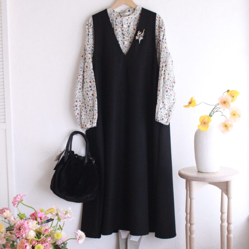 今日もセールのお洋服からご紹介します。 オケージョンにも使えそうな黒のシンプルなジャンパースカートは シンプルで落ち感が...
