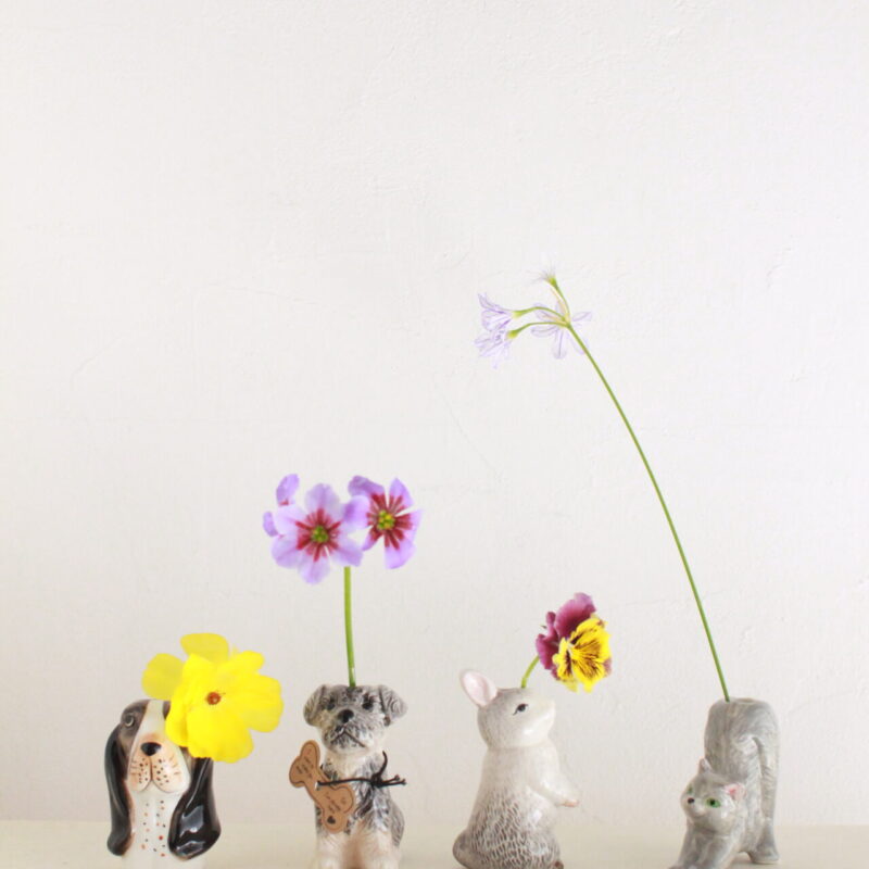 可愛い動物の小さなフラワーベースが届きました。 左から 「ドッグ BK」、 「シュナイザー」 「ラビット」 「キャット」...