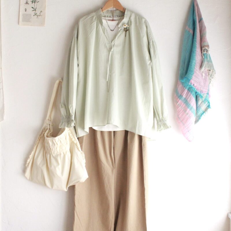軽やかな春色ブラウスのコーデです。 HEAVENLY コットンリネンウォッシャースモックプルオ...