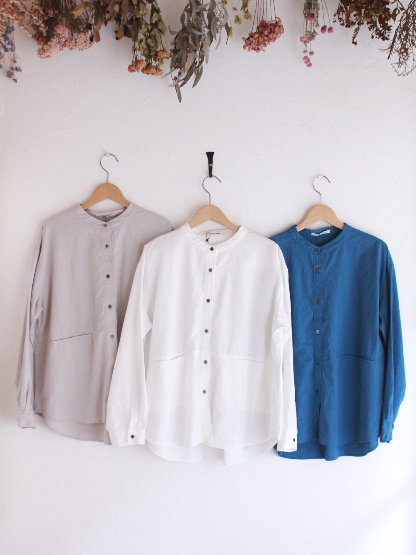 「nachukara コットンワッシャーバンドカラーシャツ 」12,800円 (税込 14,080円)