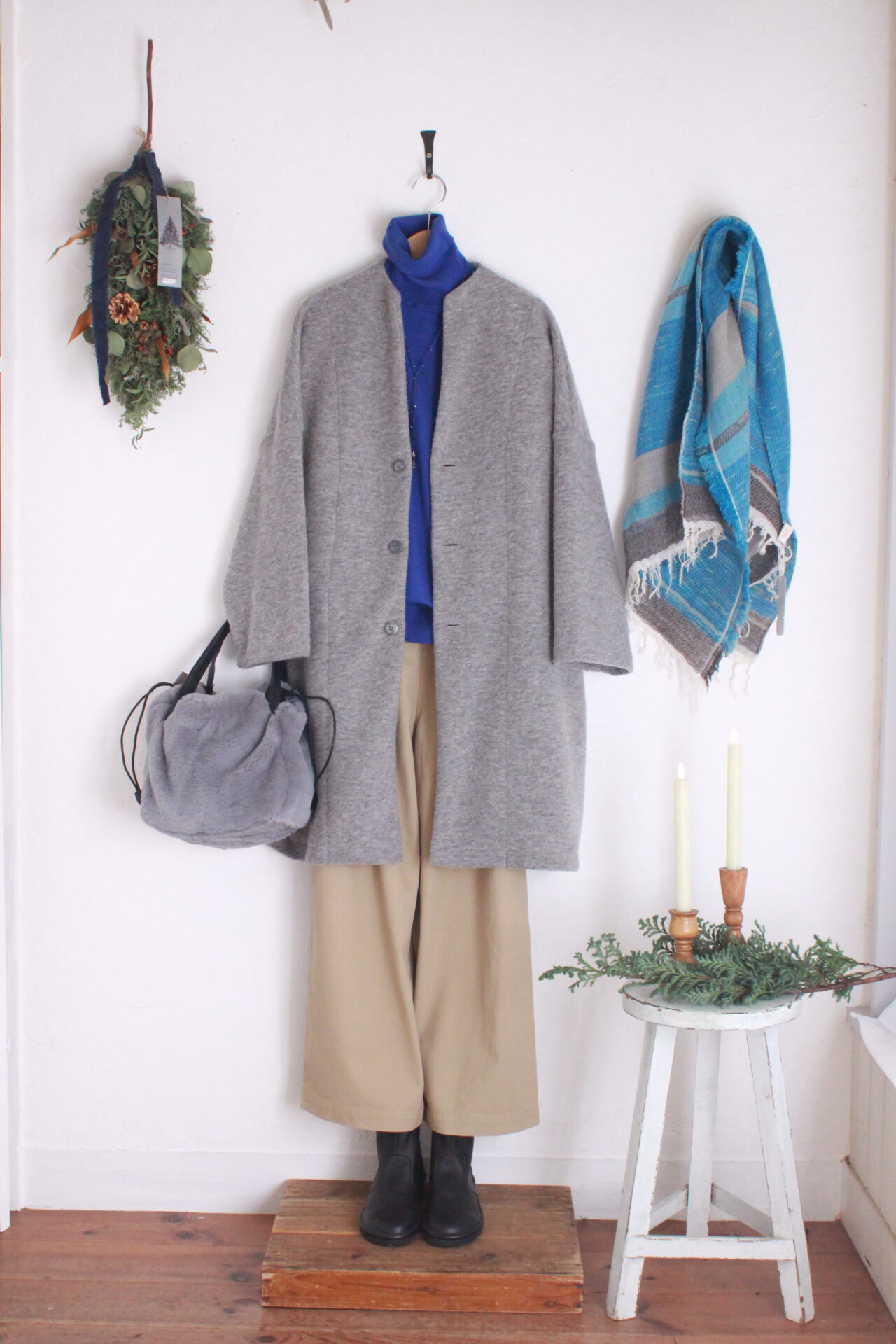 ポリエステルウール混紡で軽くてあったかい一枚。