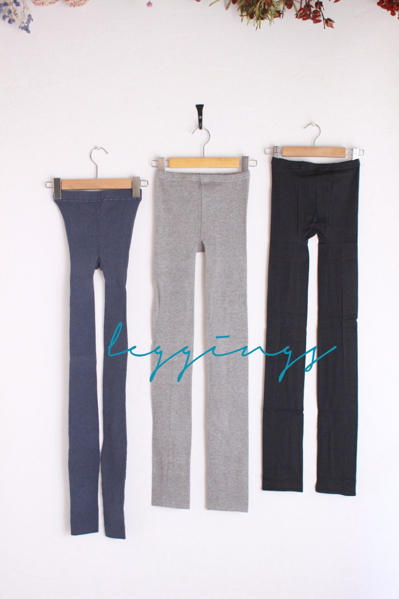 3点とも10分丈のレギンスです。形は同じですが素材が違います。