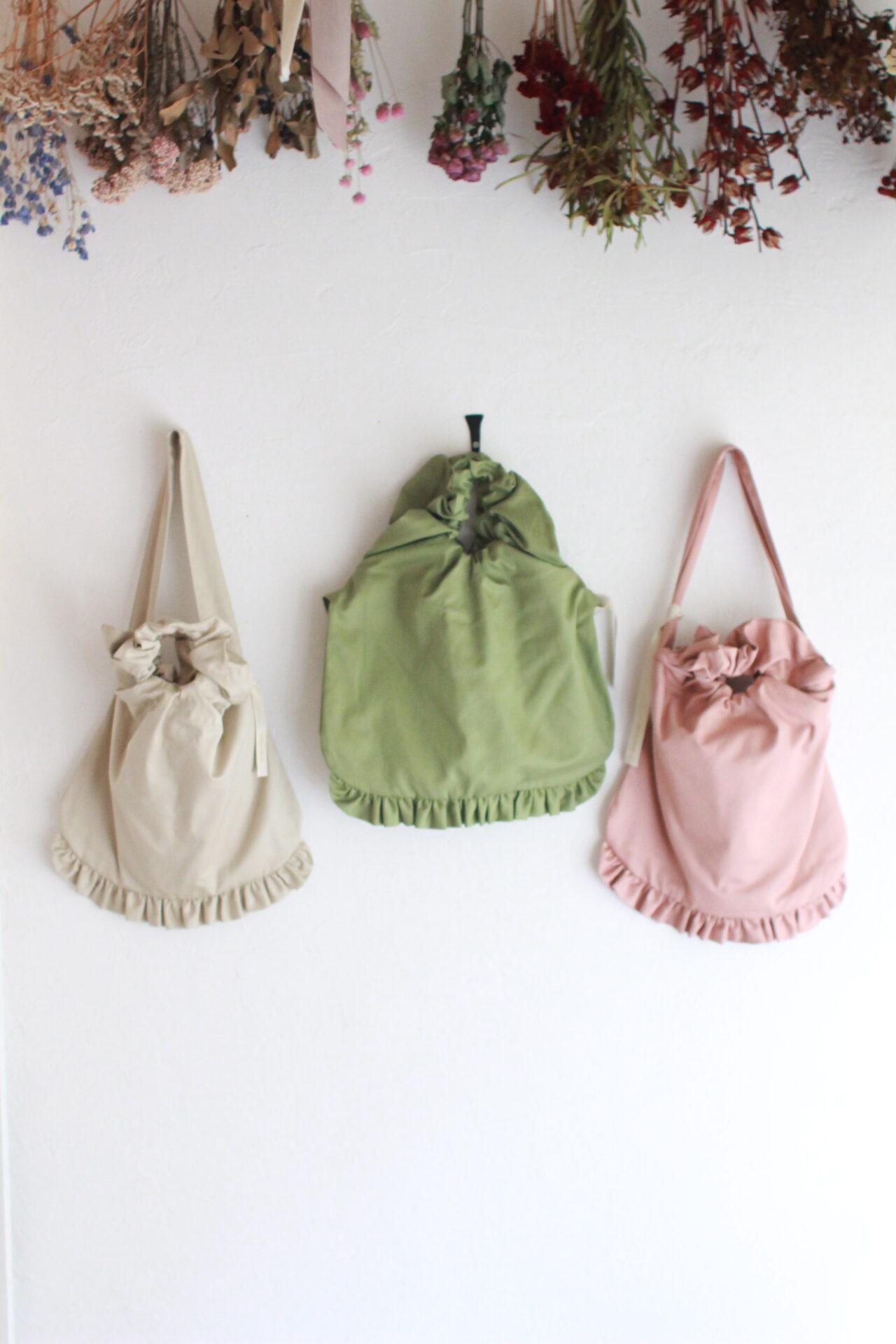 裾のフリルが可愛い春色バッグは