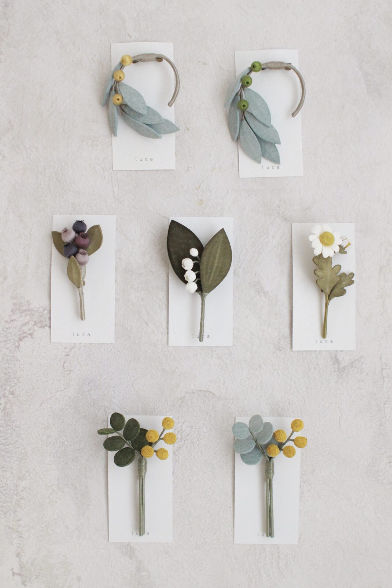 マトリカリアとすずらんは葉っぱの部分が手染めになっております。