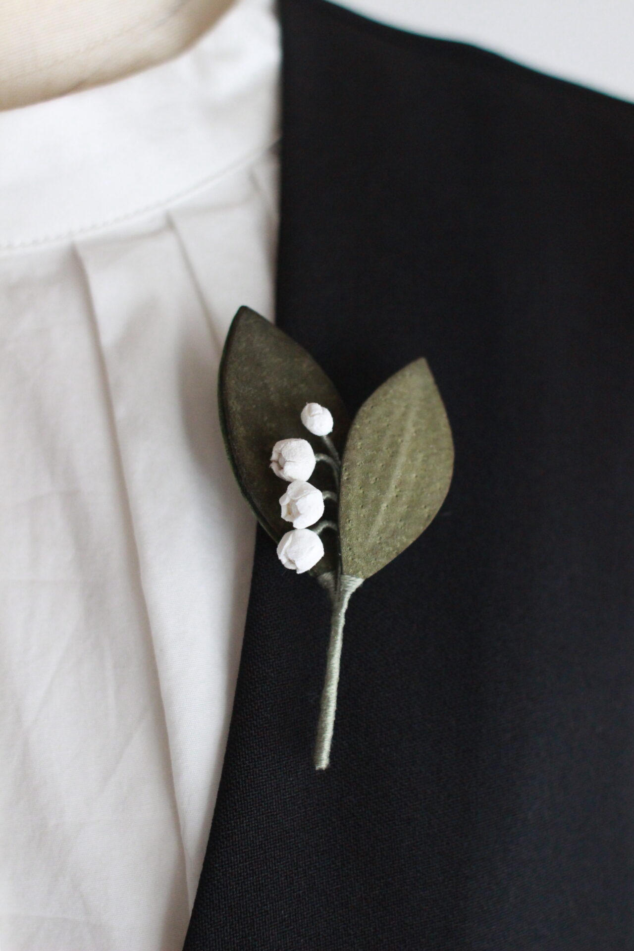 マトリカリアとすずらんは葉っぱの部分が手染めになっております。