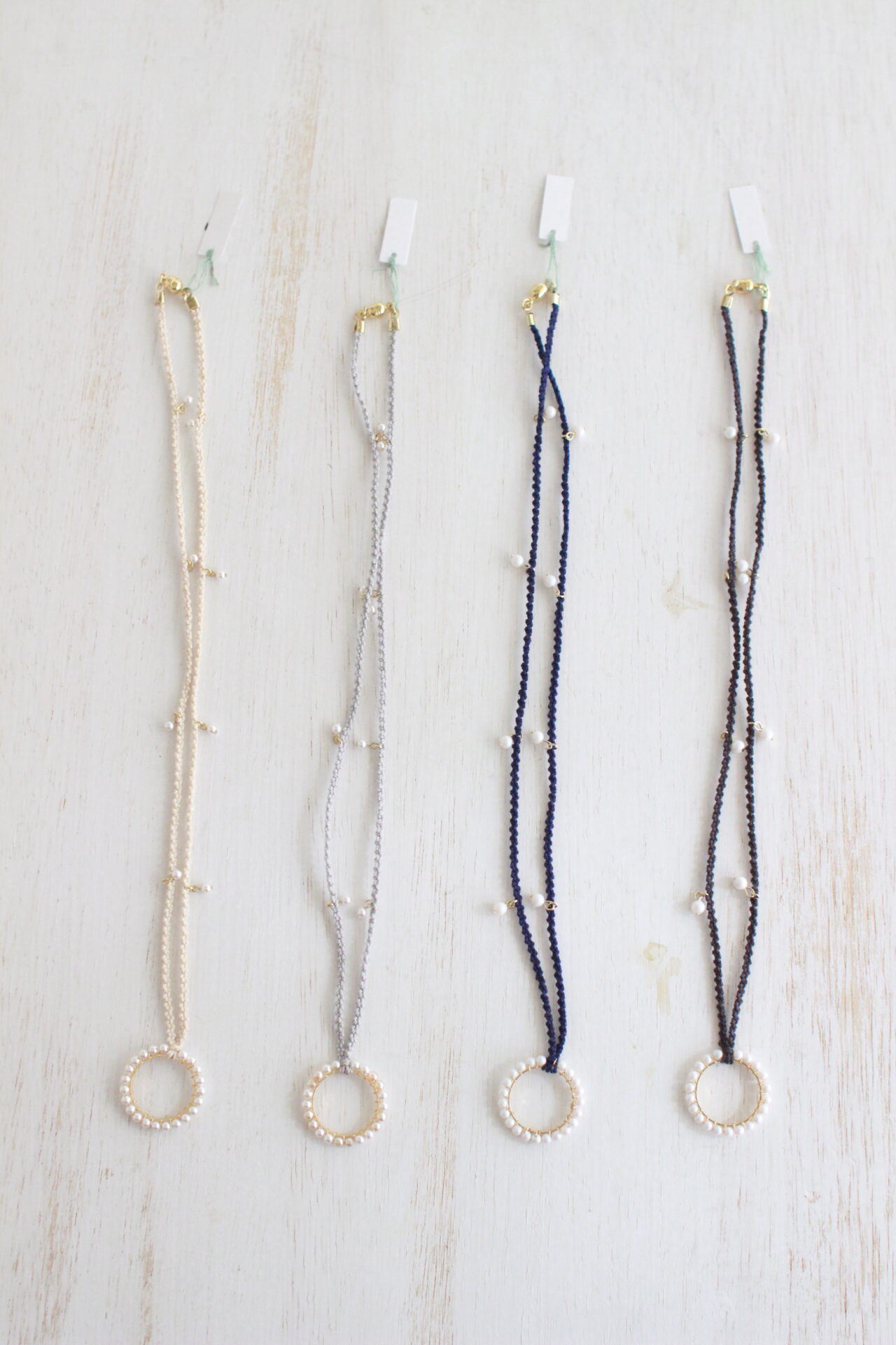 リングにくるくるっと通すだけで形が決まるコードネックレス。