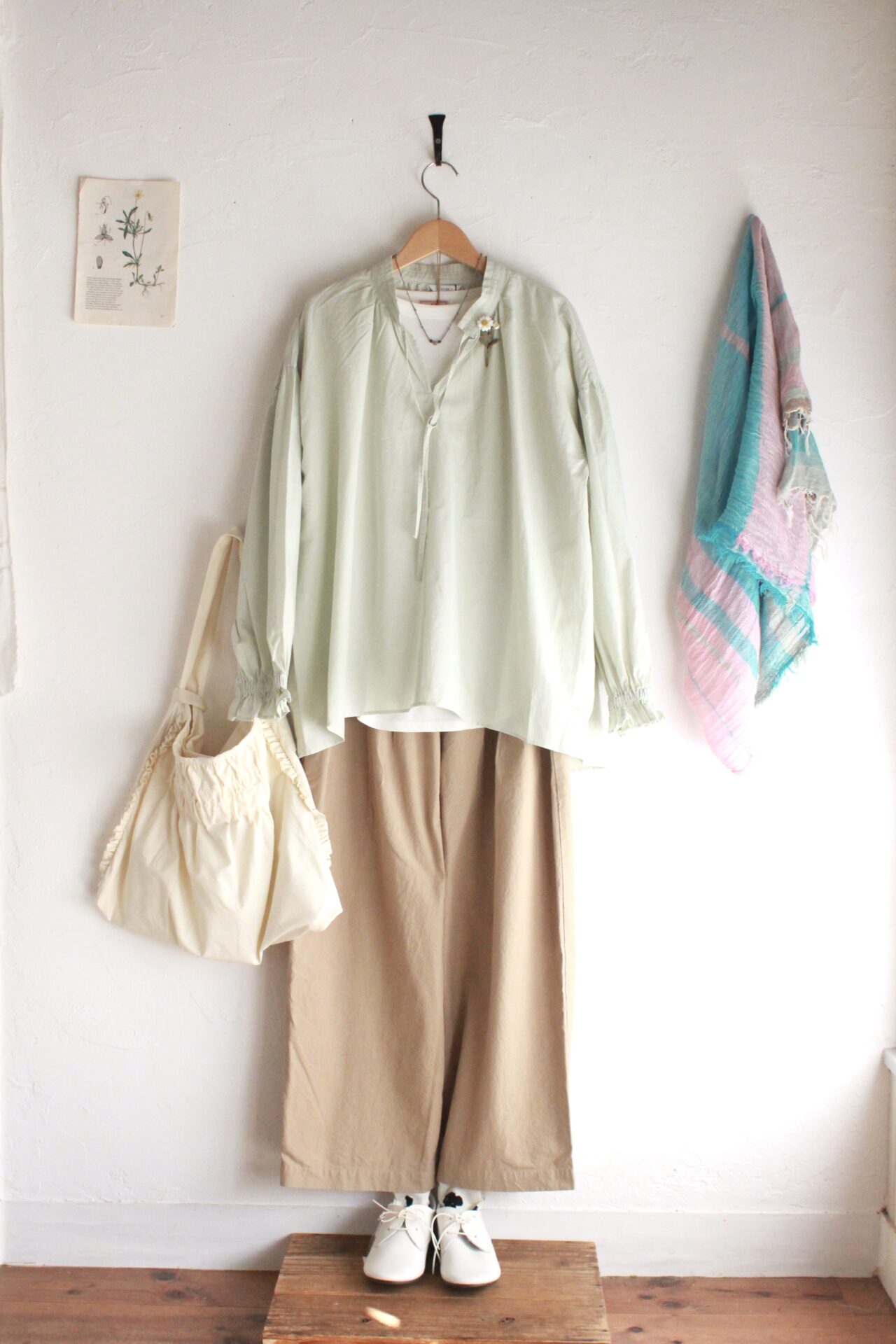 軽やかな春色ブラウスのコーデです。