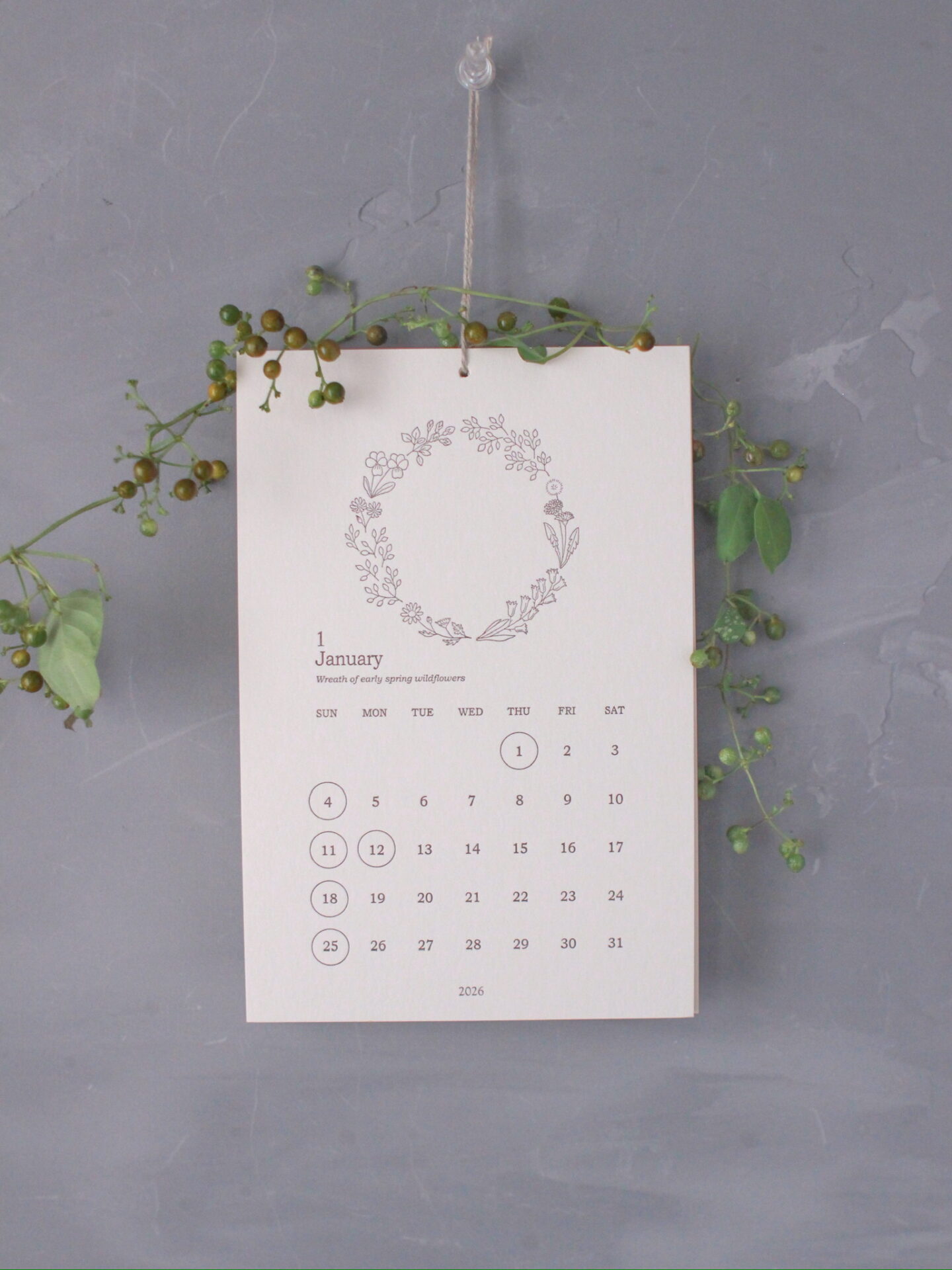 山野草や野の草花など、身近な植物を活版印刷で楽しめるカレンダーは