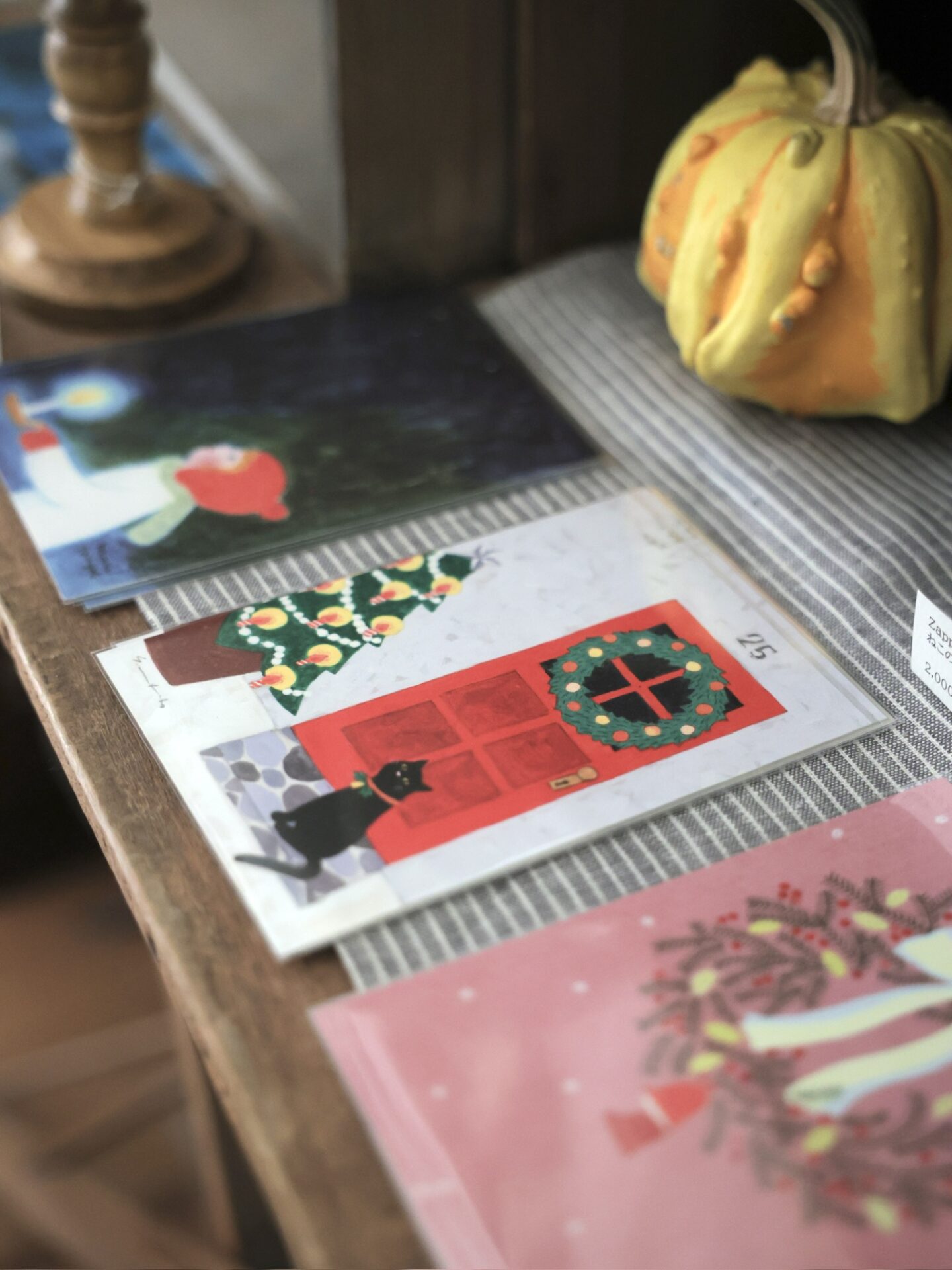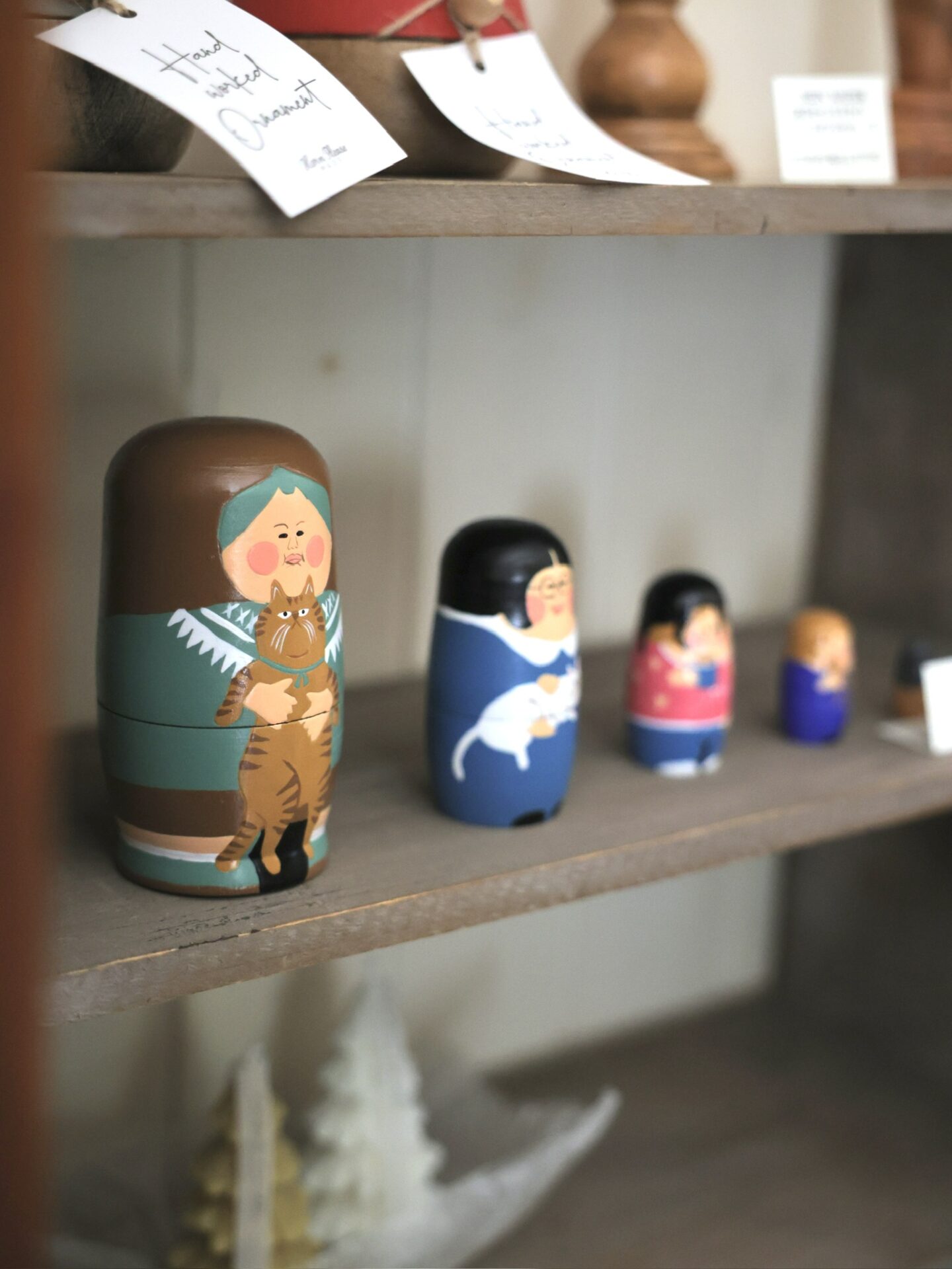 マトリョーシカや猫の可愛い置物、ホリデーシーズンのカードもございます。