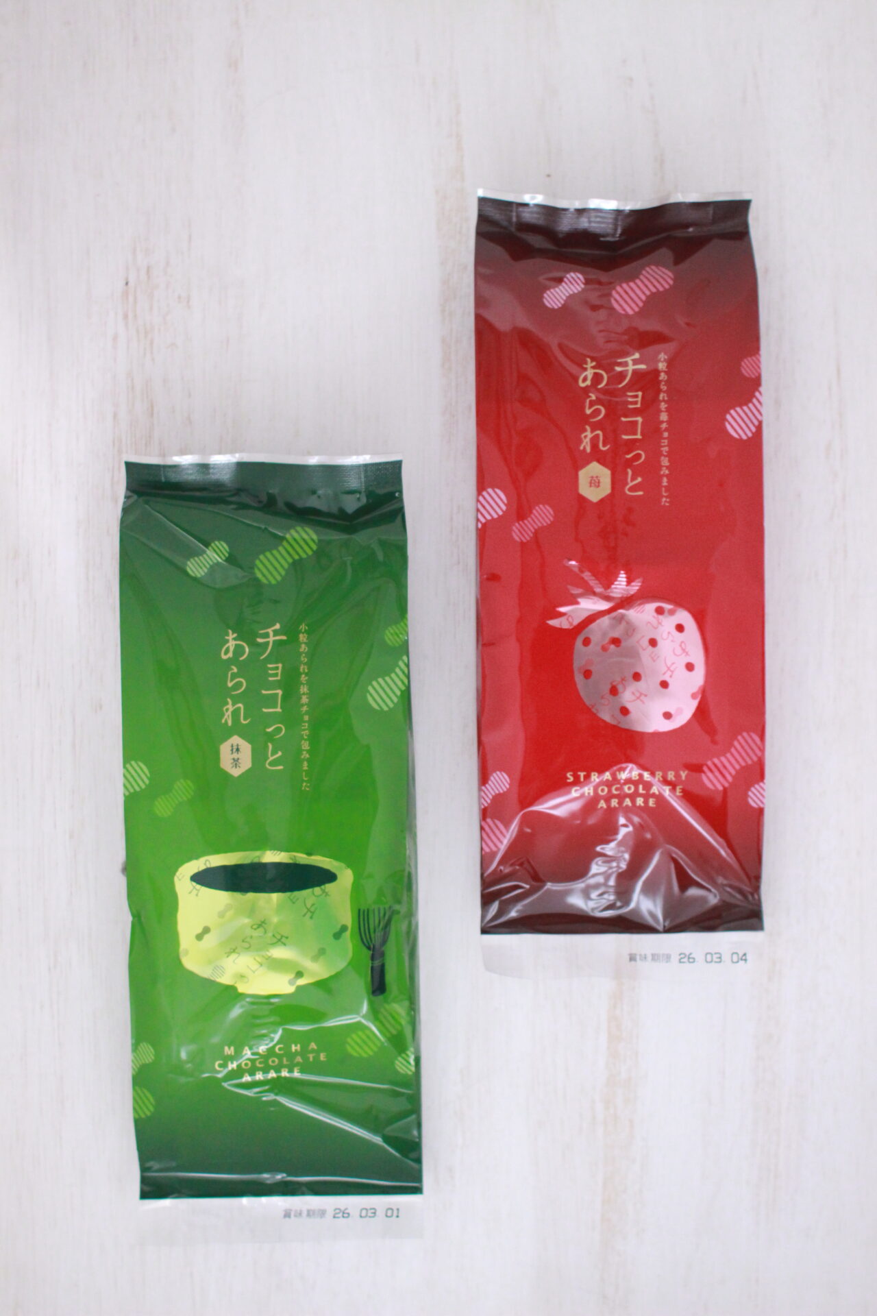 抹茶と苺。パッケージも赤と緑で揃えて贈り物にしても良きです。
