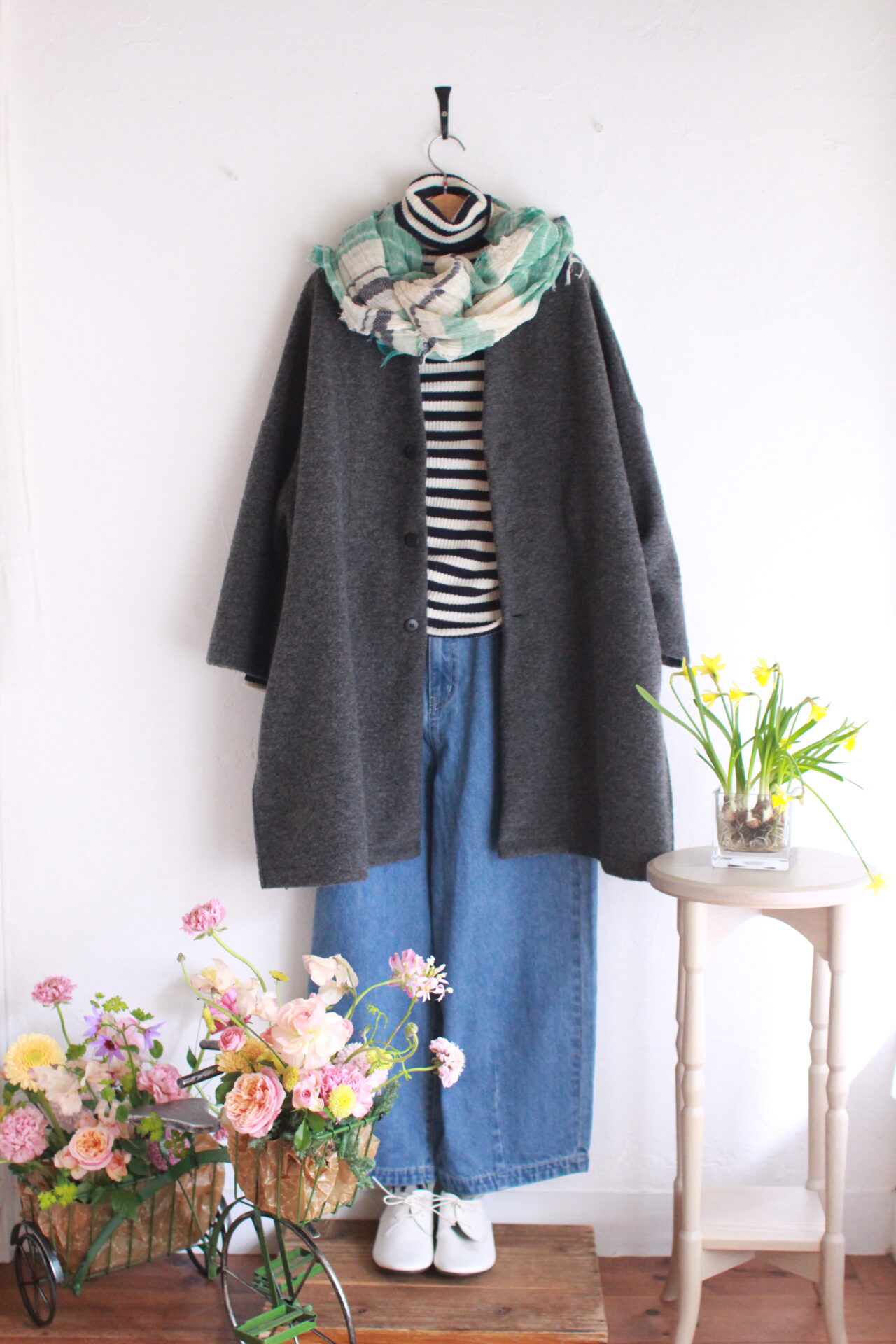 ポリエステルウール混紡で軽くてあったかい一枚。