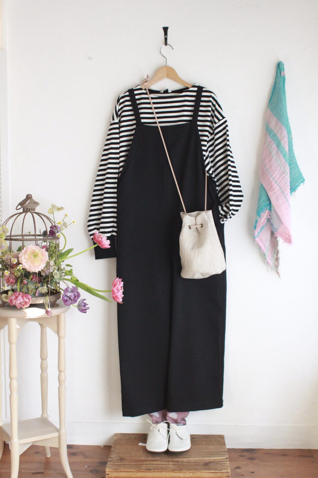 色違いには違うカジュアルっぽいサロペットを合わせてみました。