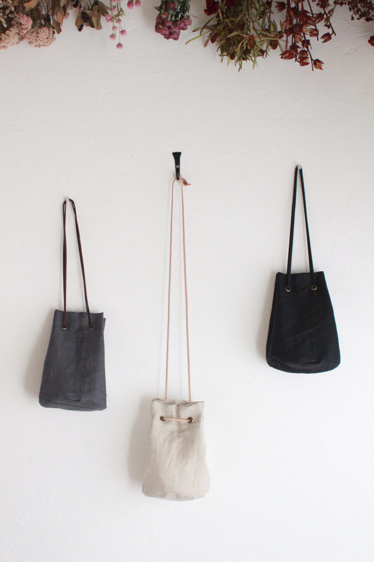 ヒモを一重にするとポシェットに。